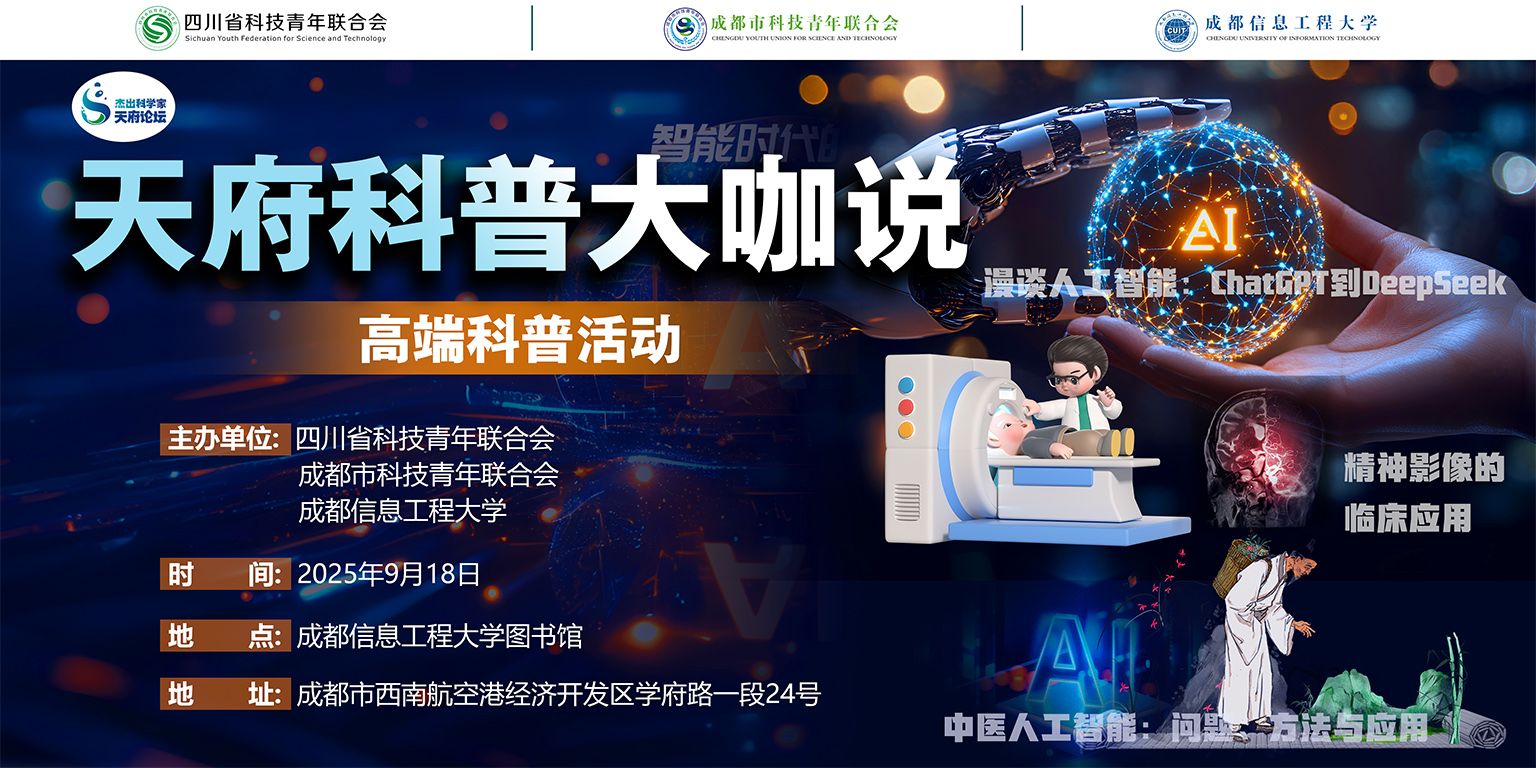应“四川省科学技术协会2025年全国科普月活动“的号召,2025年9月18日由四川省科技青年联合会、成都市科技青年联合会、成都信息工程大学携手主办的“天府科普大咖说”高端科普活动在成都信息工程大学拉开序幕。此次活动聚焦前沿科技热点,旨在引领大众进入神秘的精神映像,探讨大语言模型和人工智能的机遇与挑战,以及中医古老智慧和现代科技的融合创新。吸引了来自四川大学华西医院、中科院成都信息技术股份有限公司、成都纺织高等专科学校、中科院光电技术研究所、西南化工研究设计院有限公司等多家单位的科青联会员及成都信息工程大学的师生共200余人参与交流探讨。